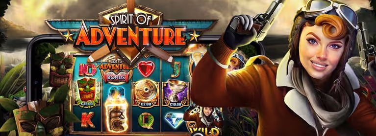 When we loaded the Spirit of Adventure slot game, we were met with a propeller whizzing around as part of the title image. That’s unusual, but a welcome sight – and a huge clue to what’s happening in the game, too. We’re met by a woman dressed to fly, and it looks as if she is going in search of some gems, since there are plenty of those on the reels as well.